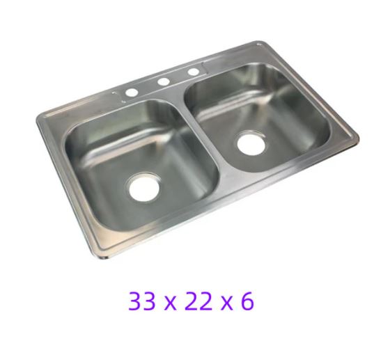 A6512, 3-Hole Drop-in Double Bowl Gauge Stainless Steel Kitchen Sink