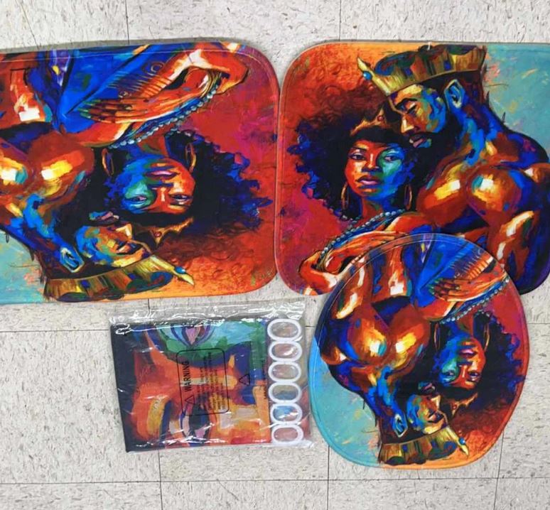 A6645, 4 pieces Shower Curtain Bathroom mat Set