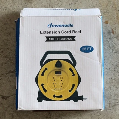 A6825, Extension Cord Storage Reel with 4-Grounded Outlets 25ft